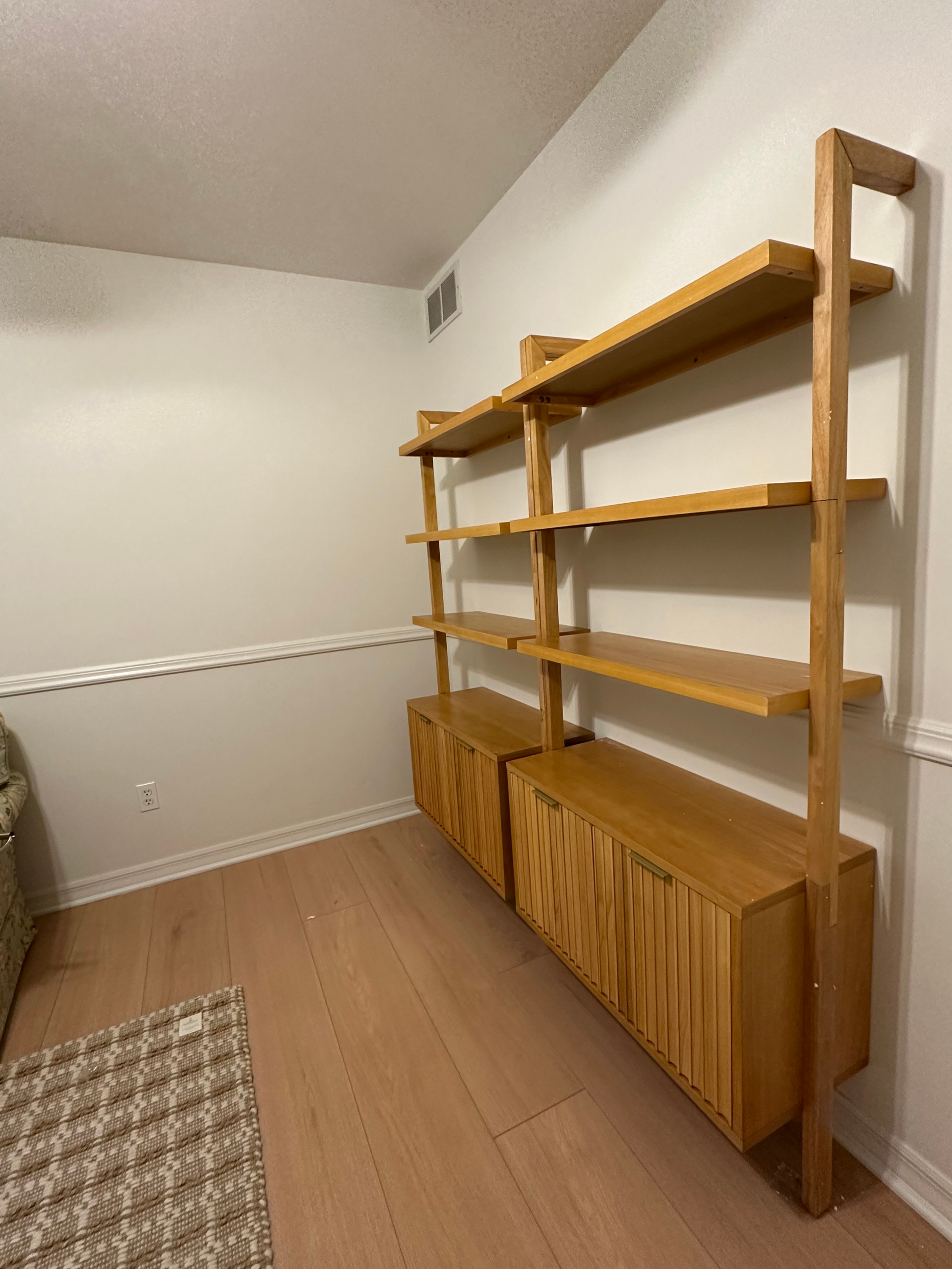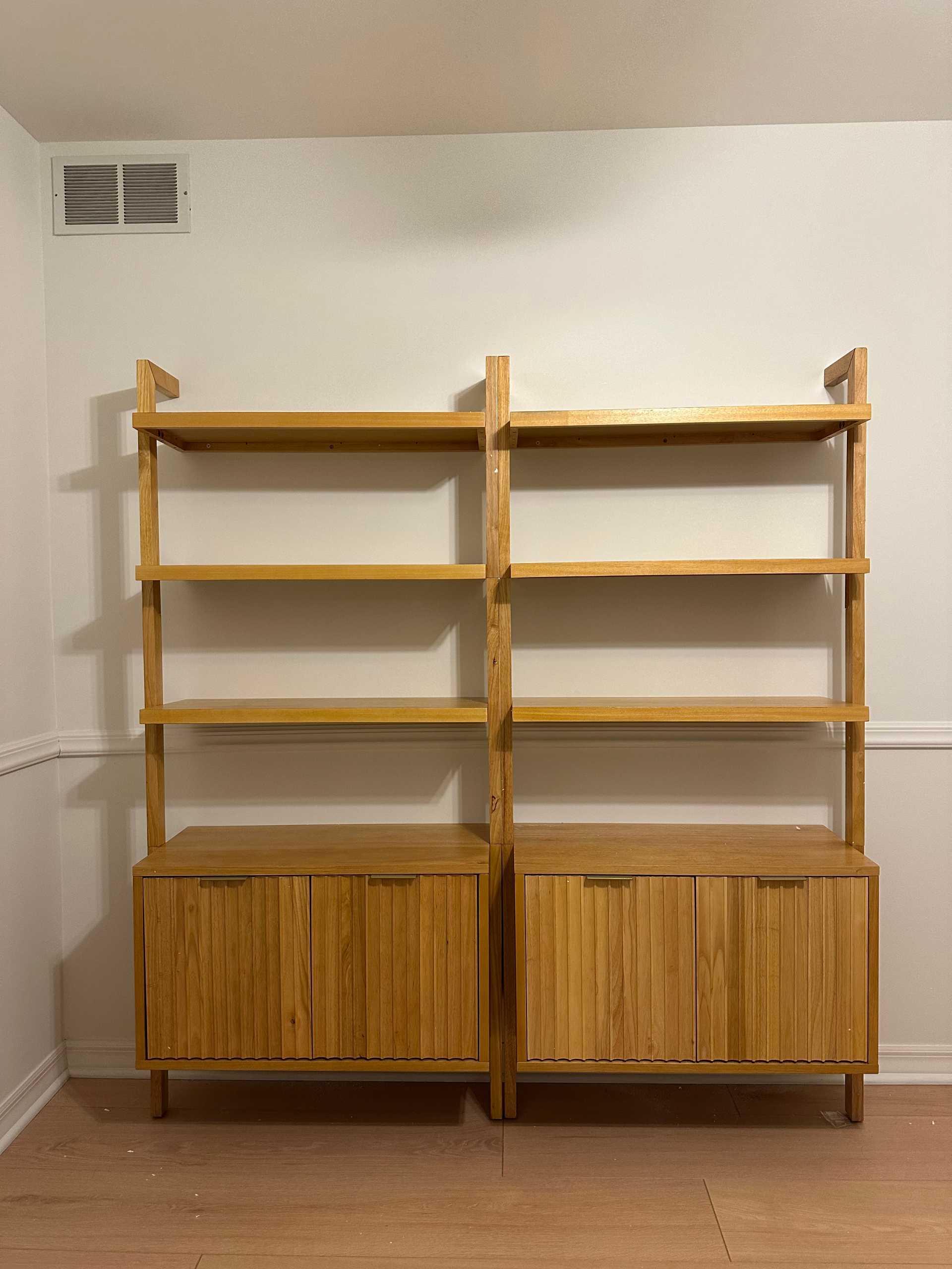 Nathan James • Jasper • Mid-Century Fluted Wall Bookshelves with Doors • Warm Pine (Set of 2)