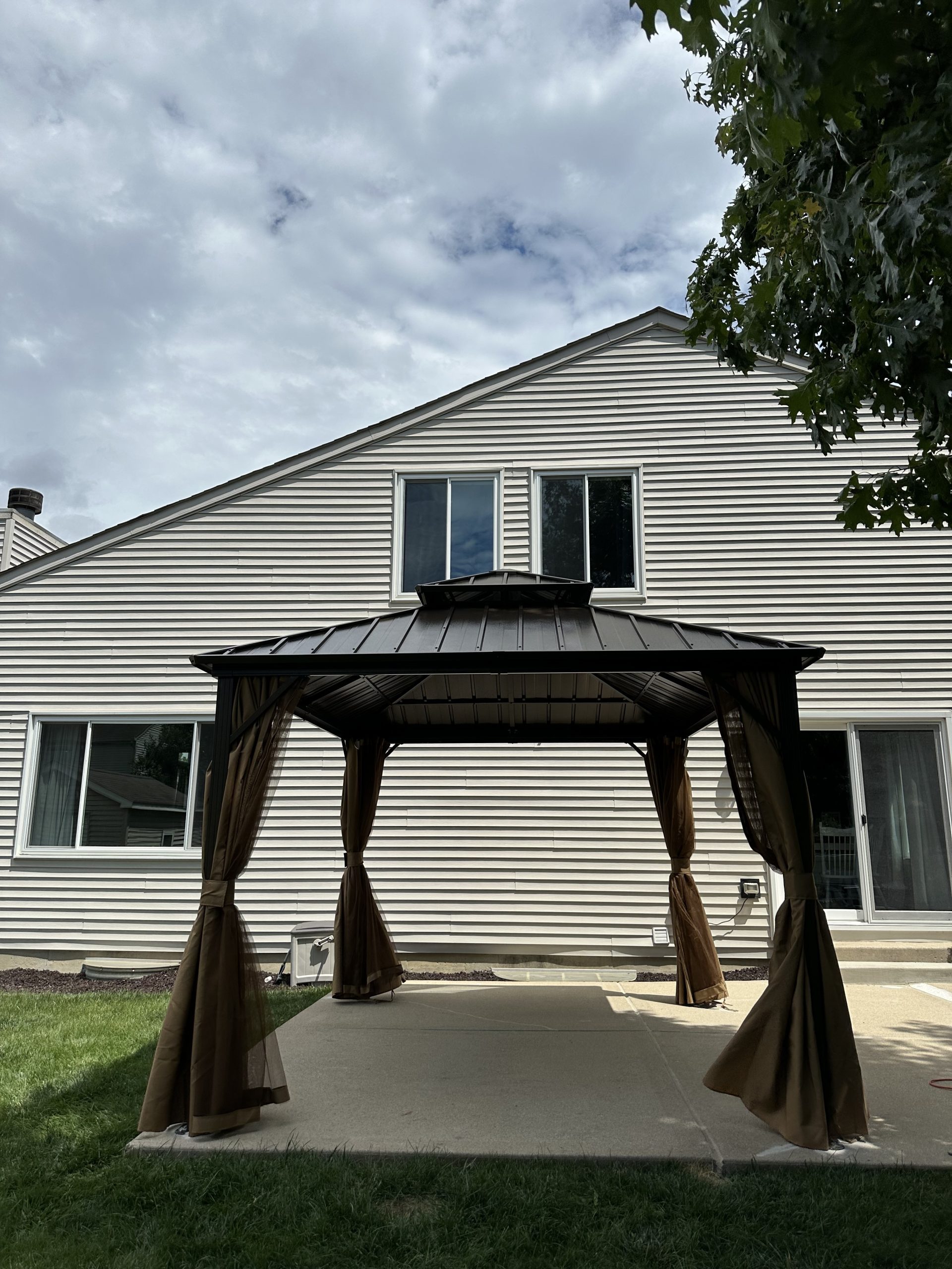 EROMMY 10x12 aluminum gazebo with double roof, mosquito net and privacy curtain