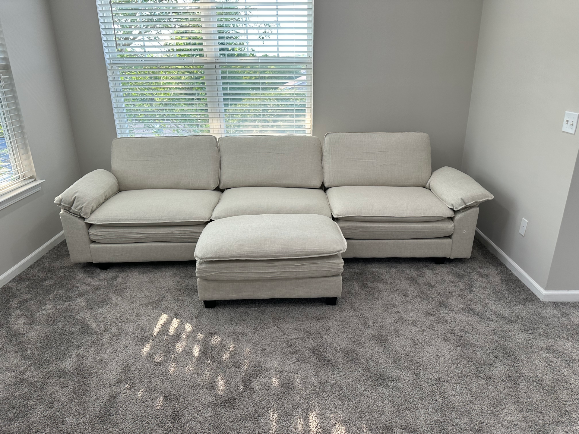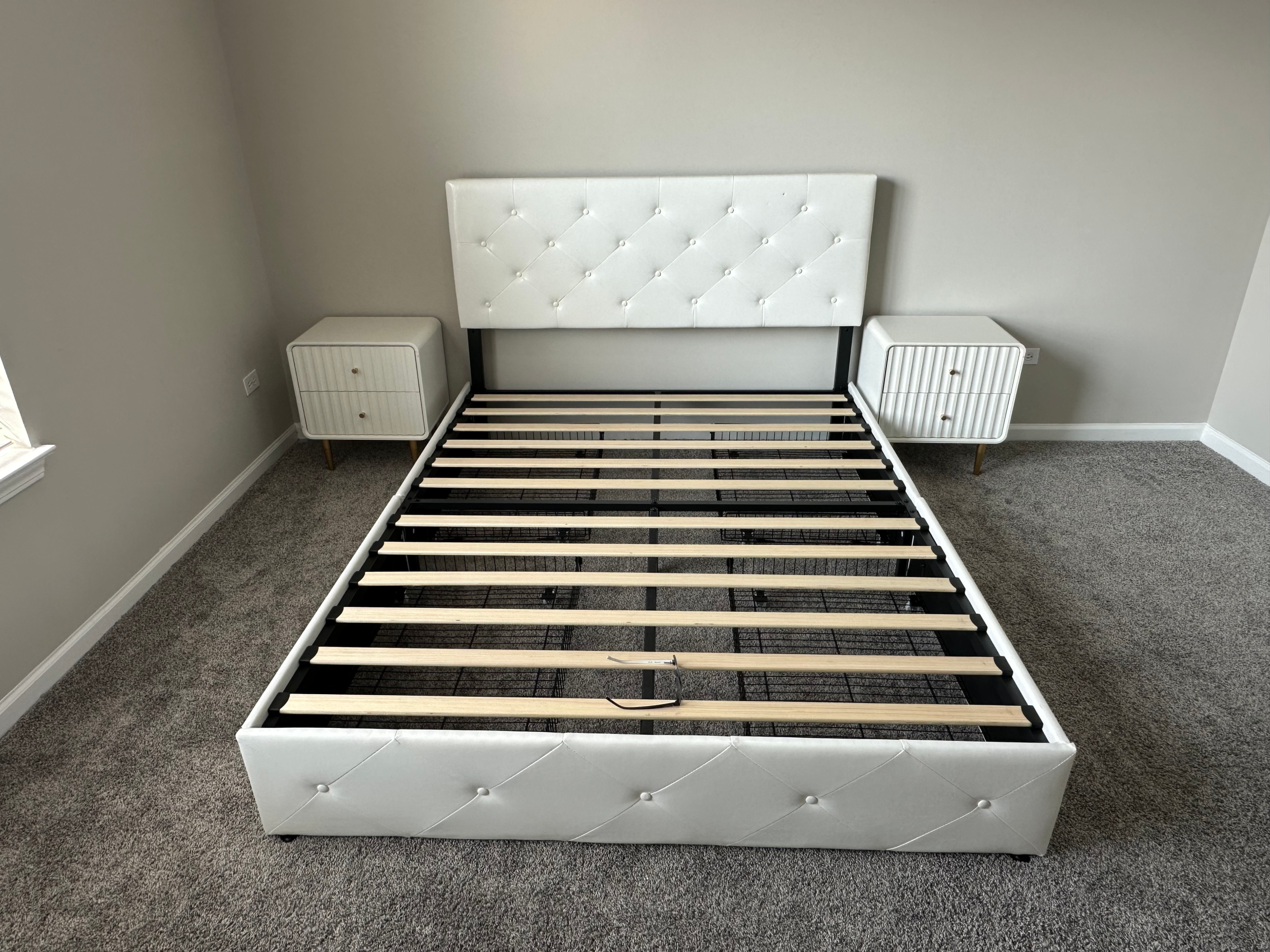 Assemble bed, dresser, and two nightstands in primary bedroom. Assembly of modular couch and two end tables in living room