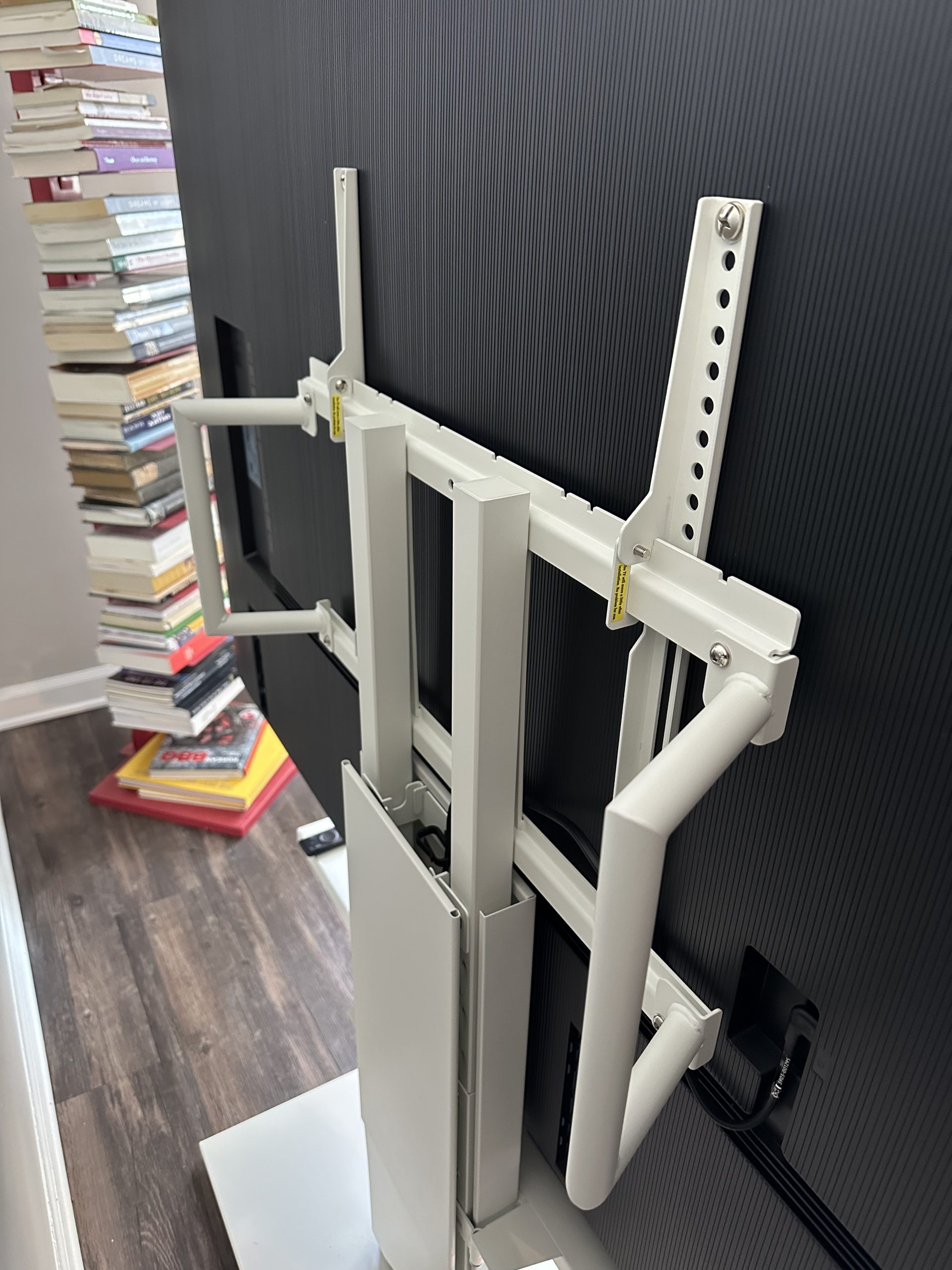 Assembly of low Japanese rolling TV stand and mounting of TV