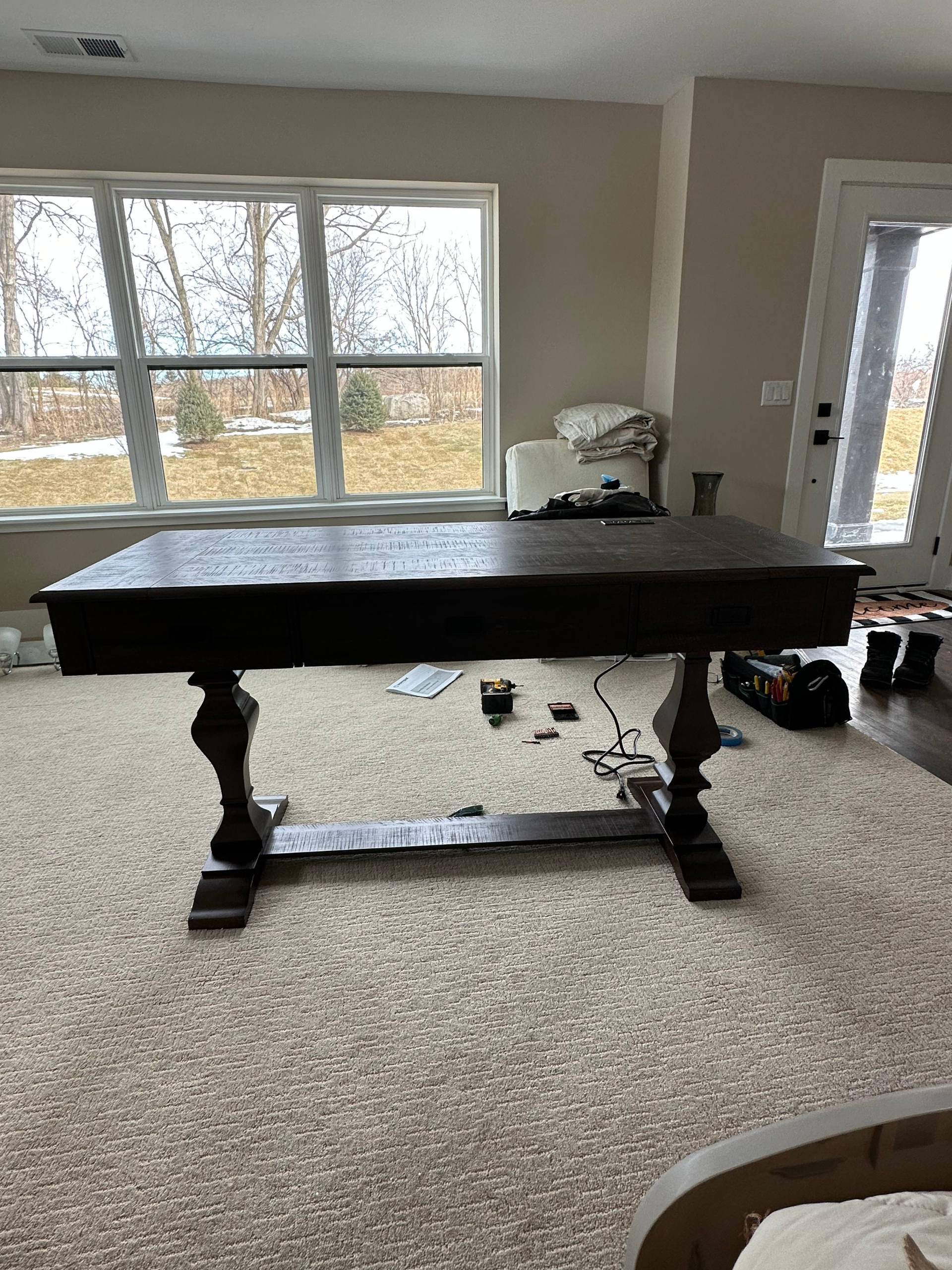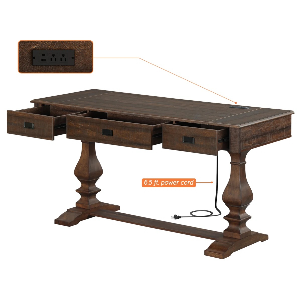 Wayfair • Gracie Oaks • Laziza 60-inch Vintage Executive Desk with Charging Station, featuring T-Style Solid Wood Legs