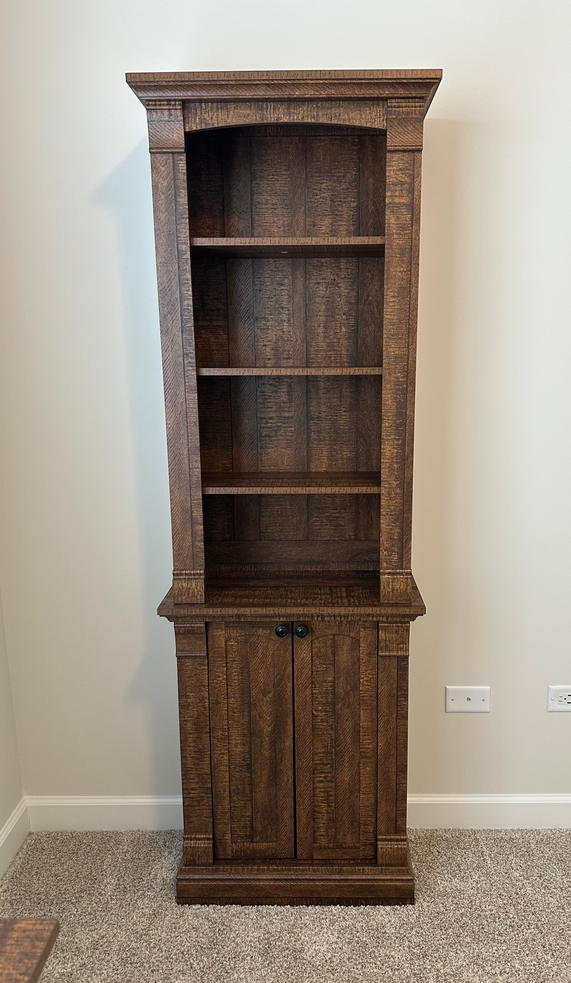 Assembly of executive desk, bookcase, and nightstand (to serve as printer stand)