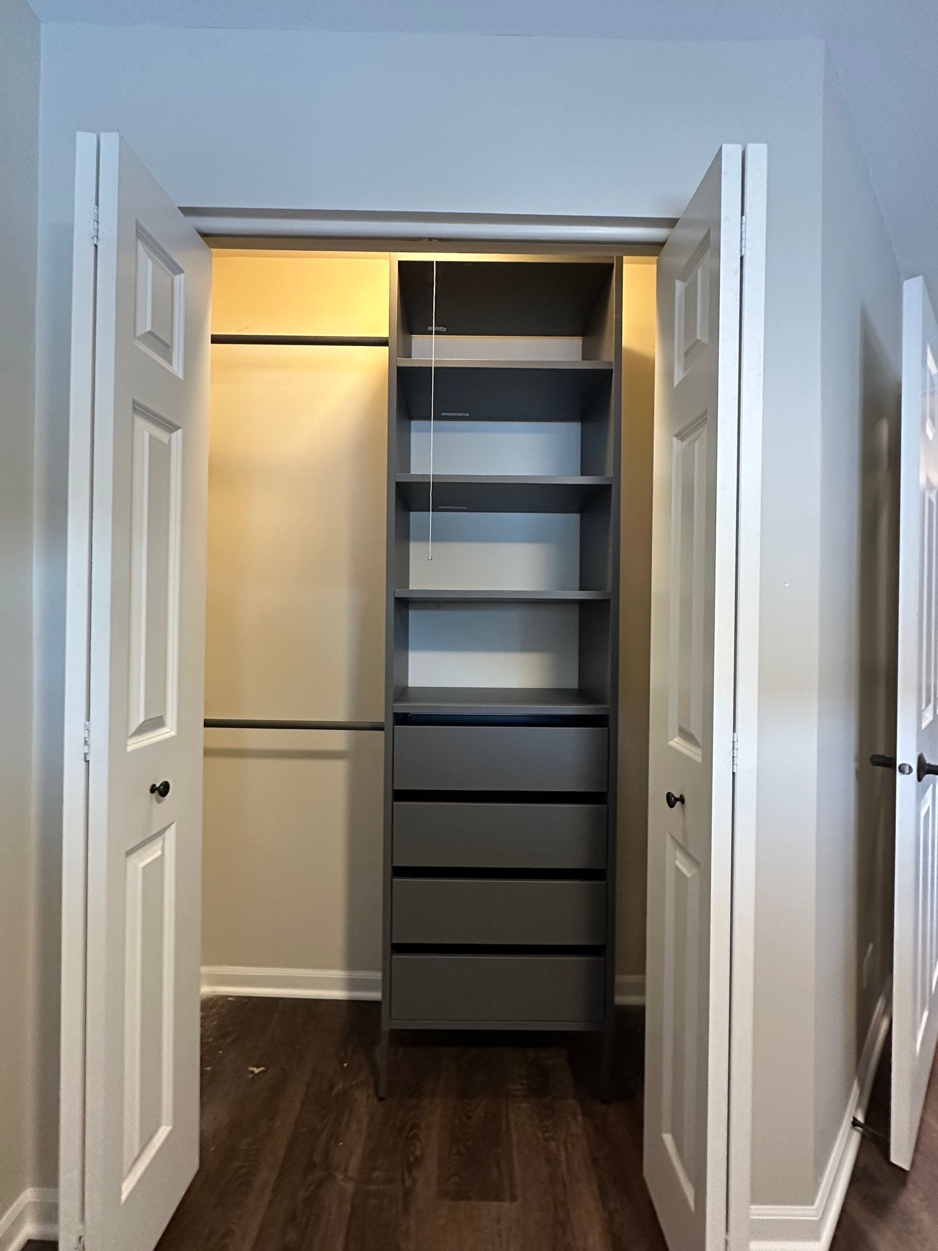 Three separate IKEA AURDAL closet system designs for three different closets