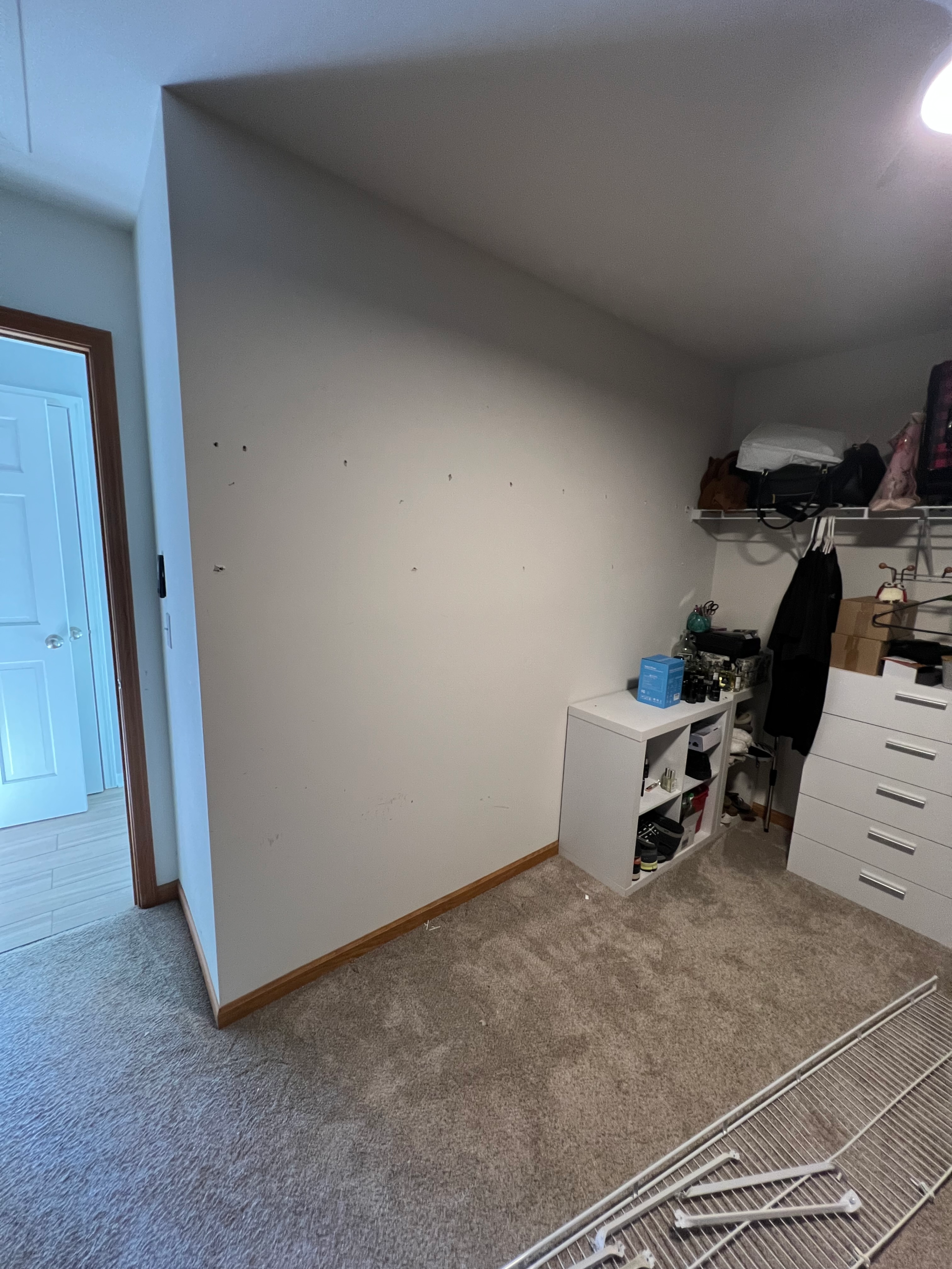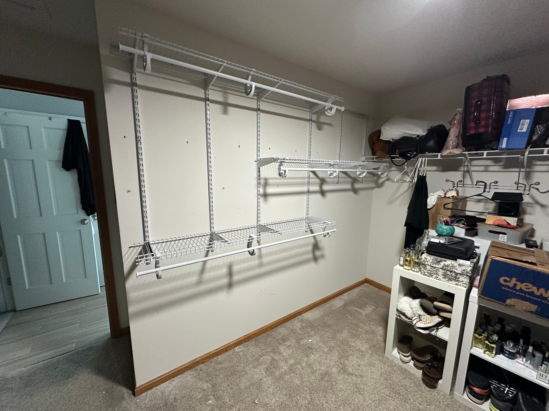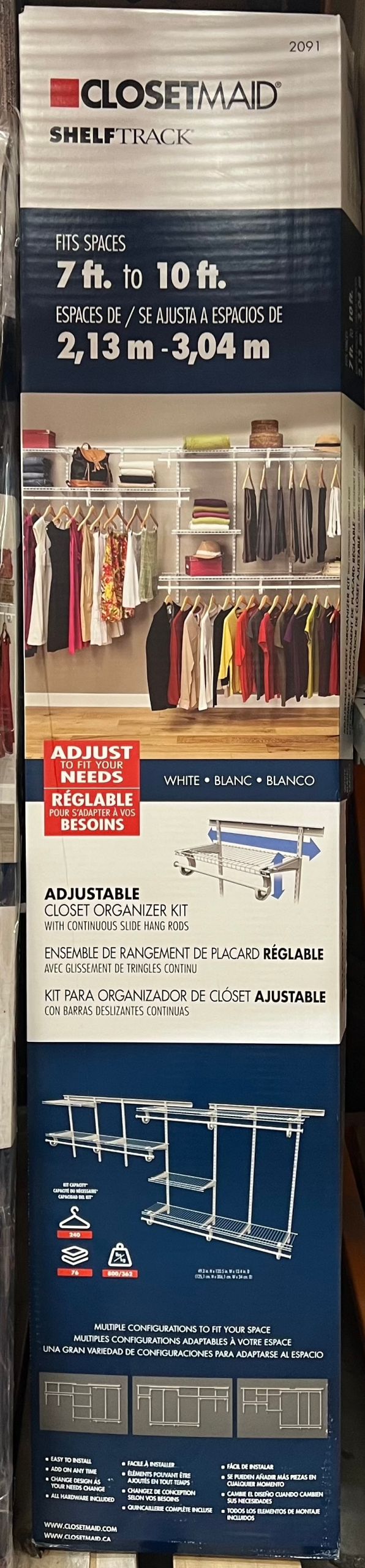 The client had a previous closet system collapse in the middle of the night. A new one needed to be installed that was more sturdy and had more options for hanging clothes and more shelves