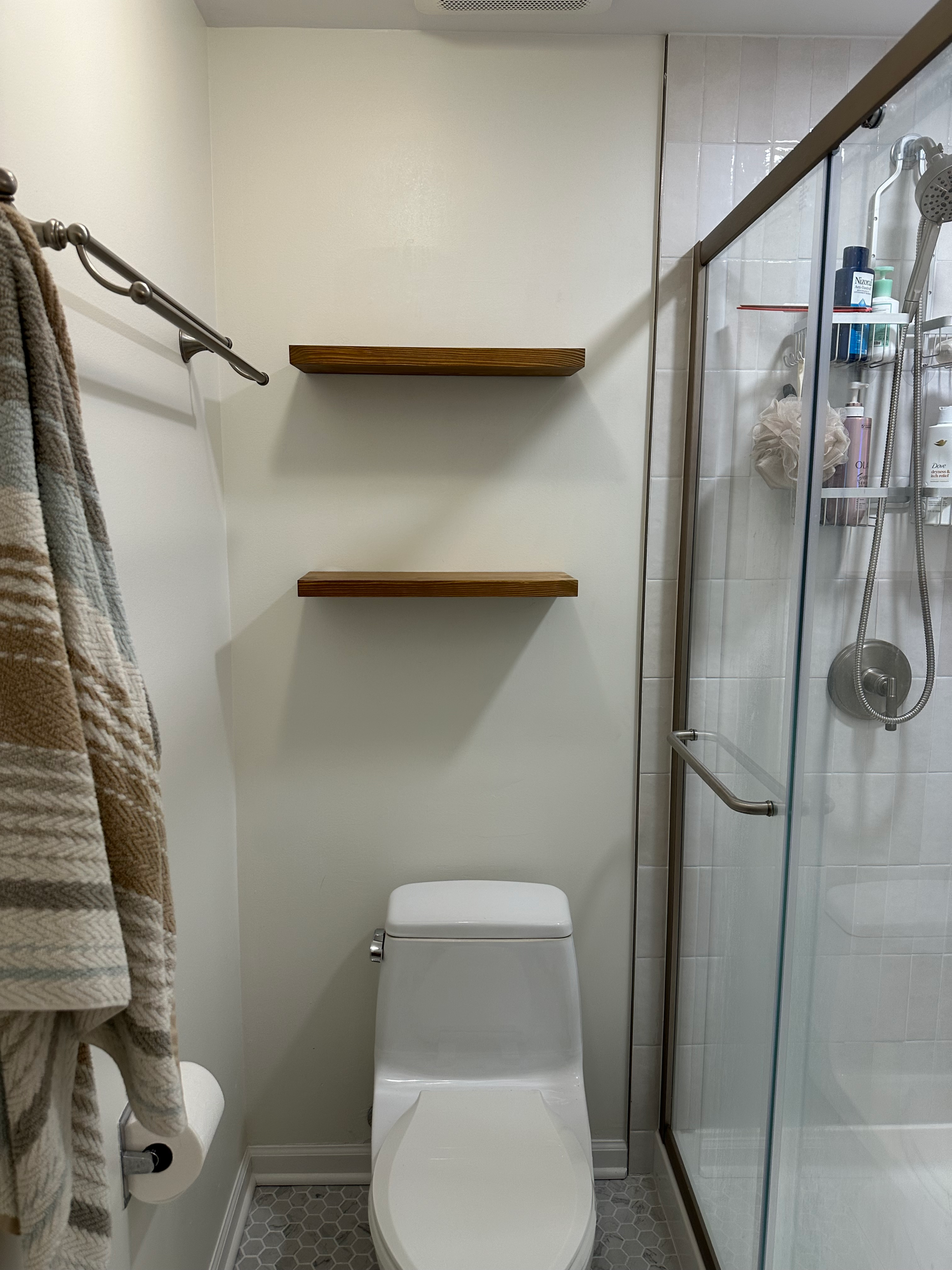 Installing curtains and mounting floating shelves