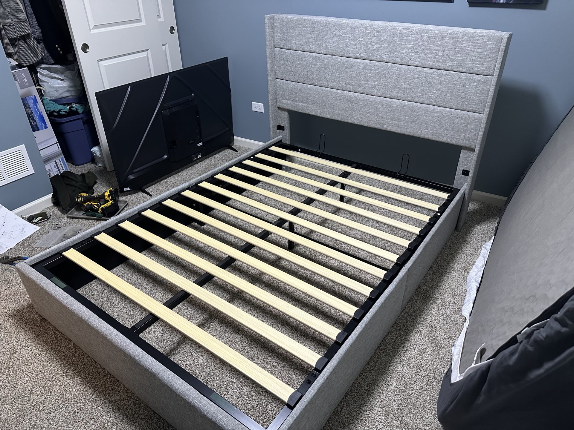 Allewie Full-Size Lift-Up Storage Bed with Modern Wingback Headboard and Hydraulic Supports