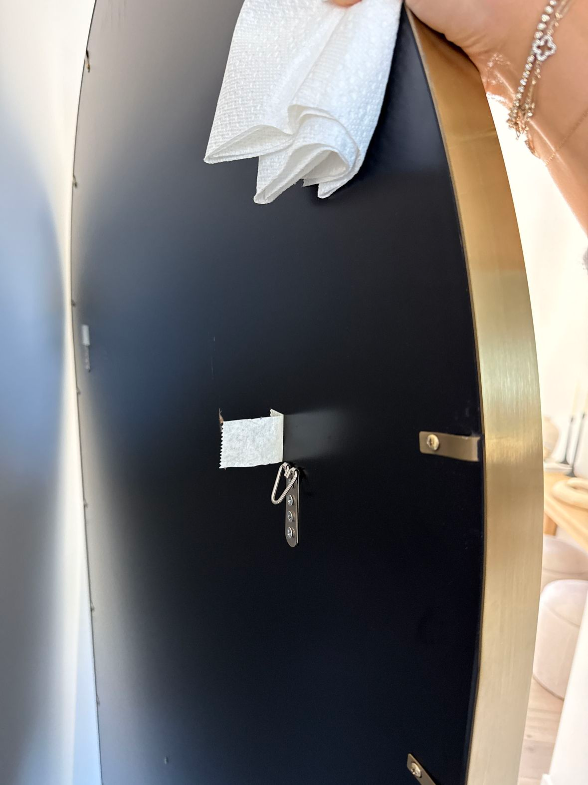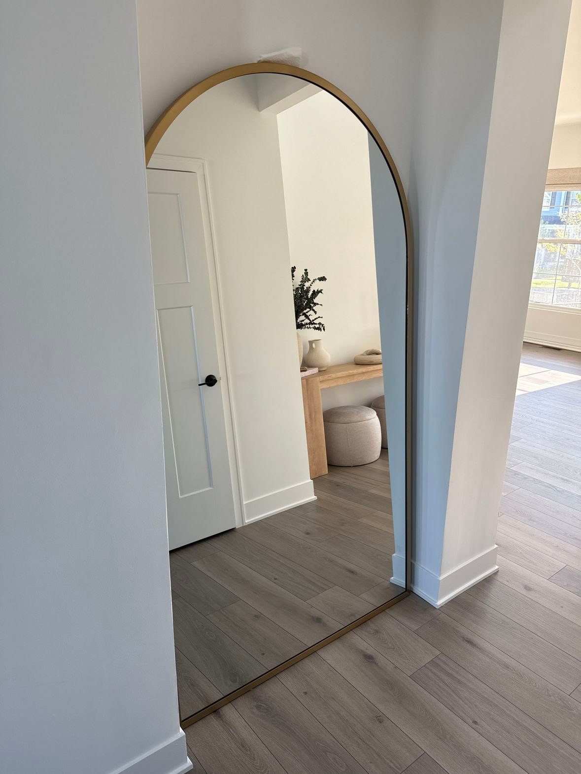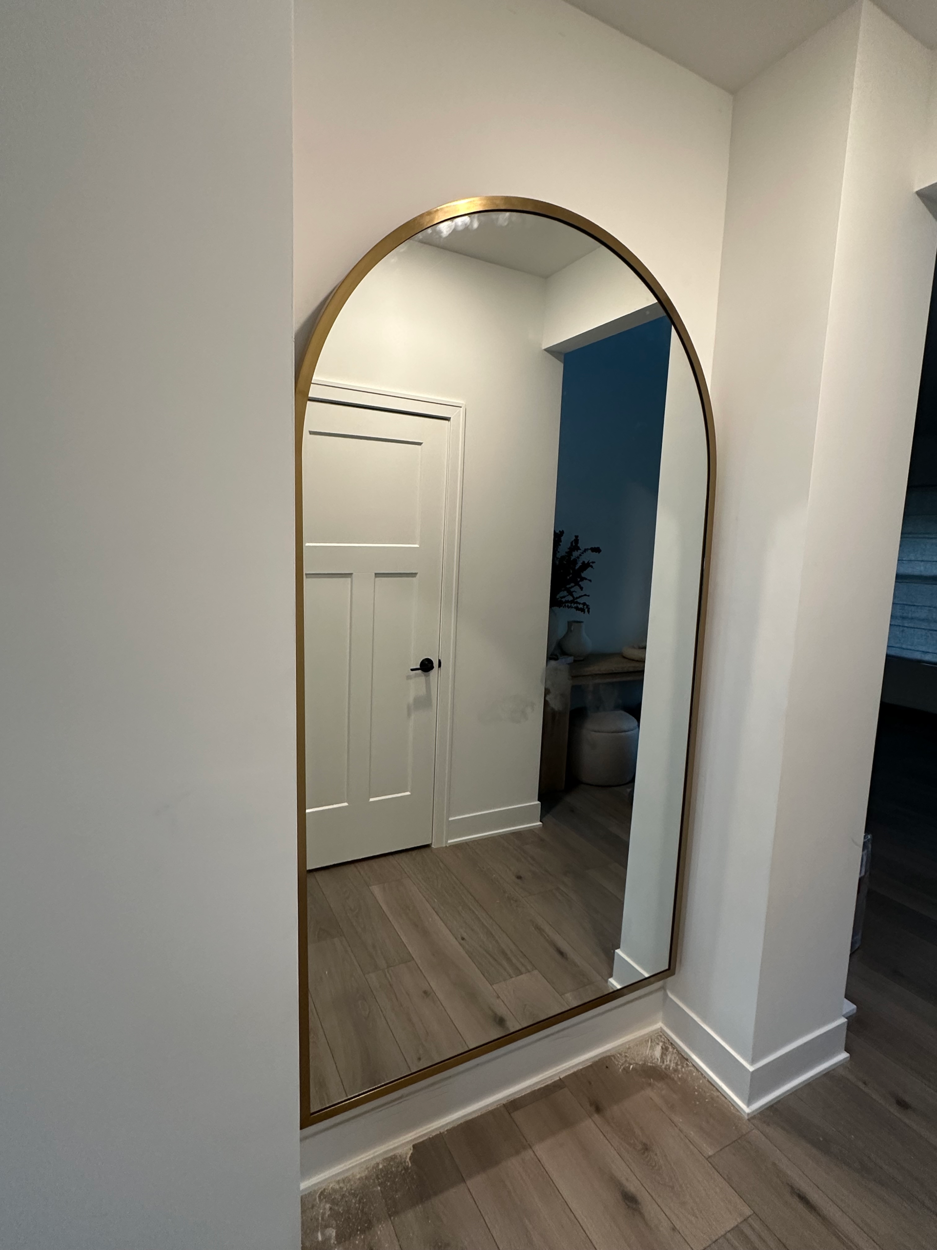 Mounting of a 200-lb. mirror in an alcove near entryway of home. Required mounting of a 2x10 header board to the studs to provide support for the mounting brackets on the back of the mirror.