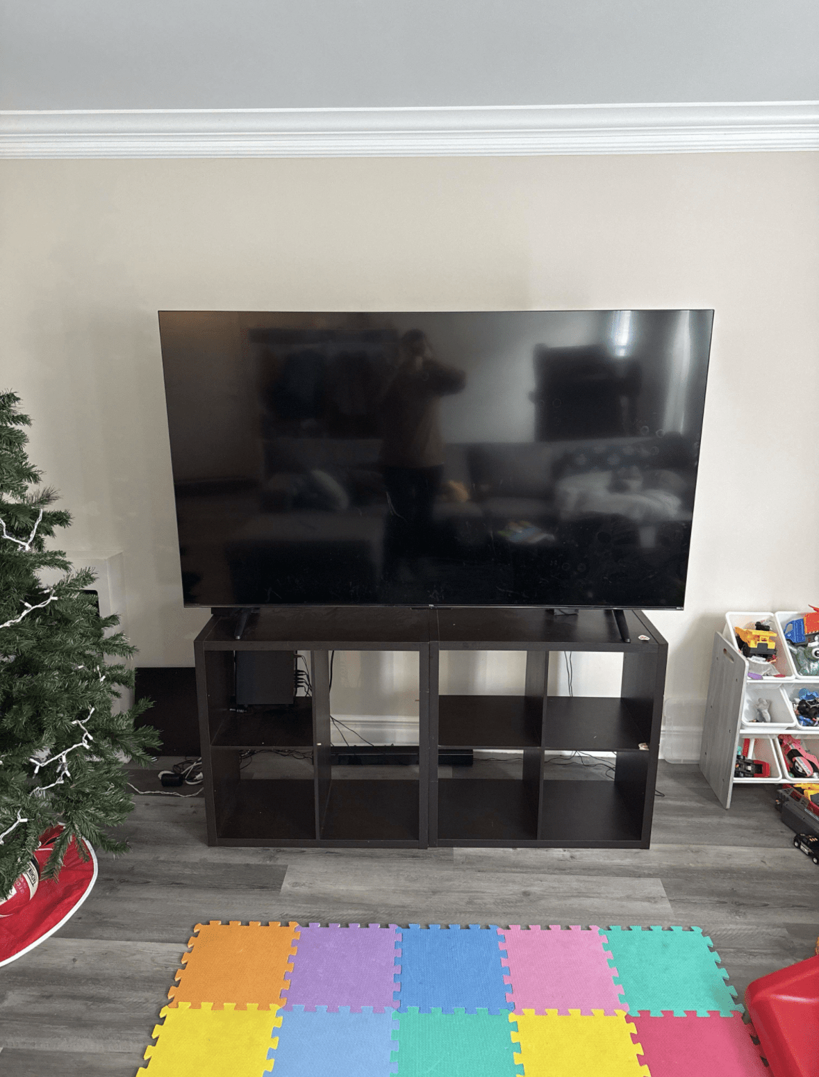 Taking a client's existing 75" TV and mounting it on the wall to free up space in the family room