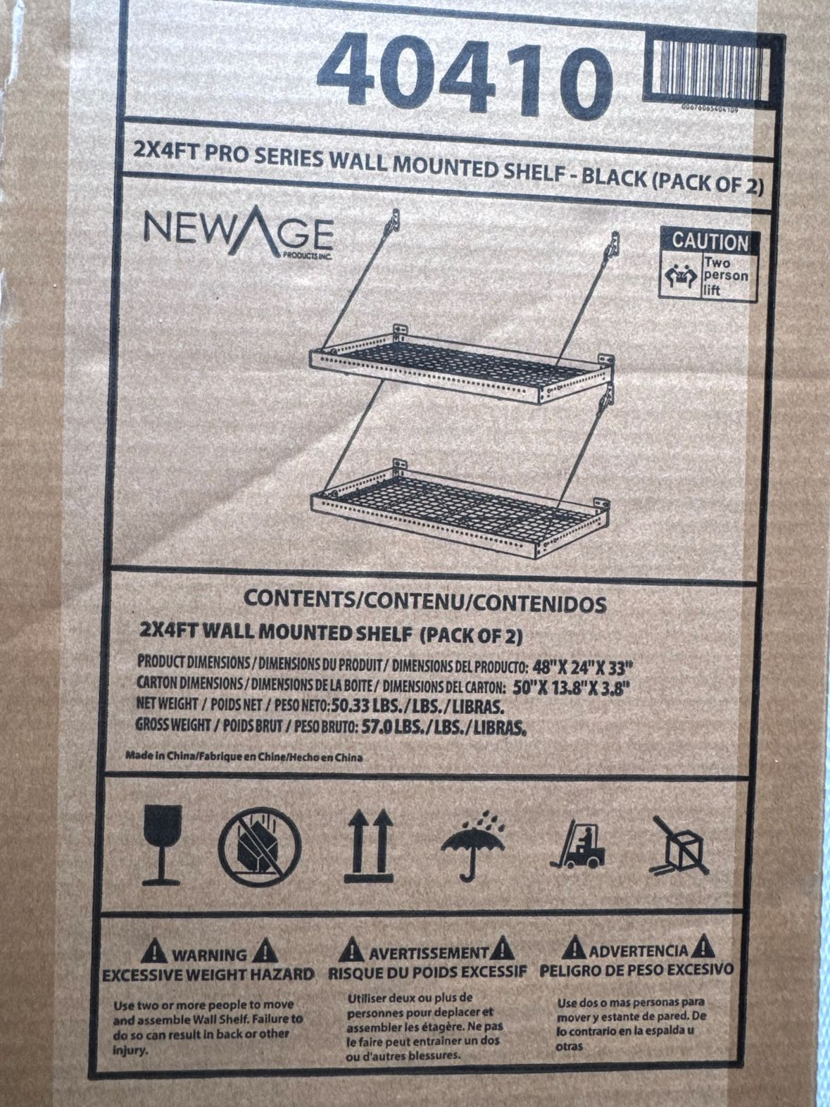 NewAge • Pack of two 2x4 ft pro series wall-mounted shelves • Model 40410